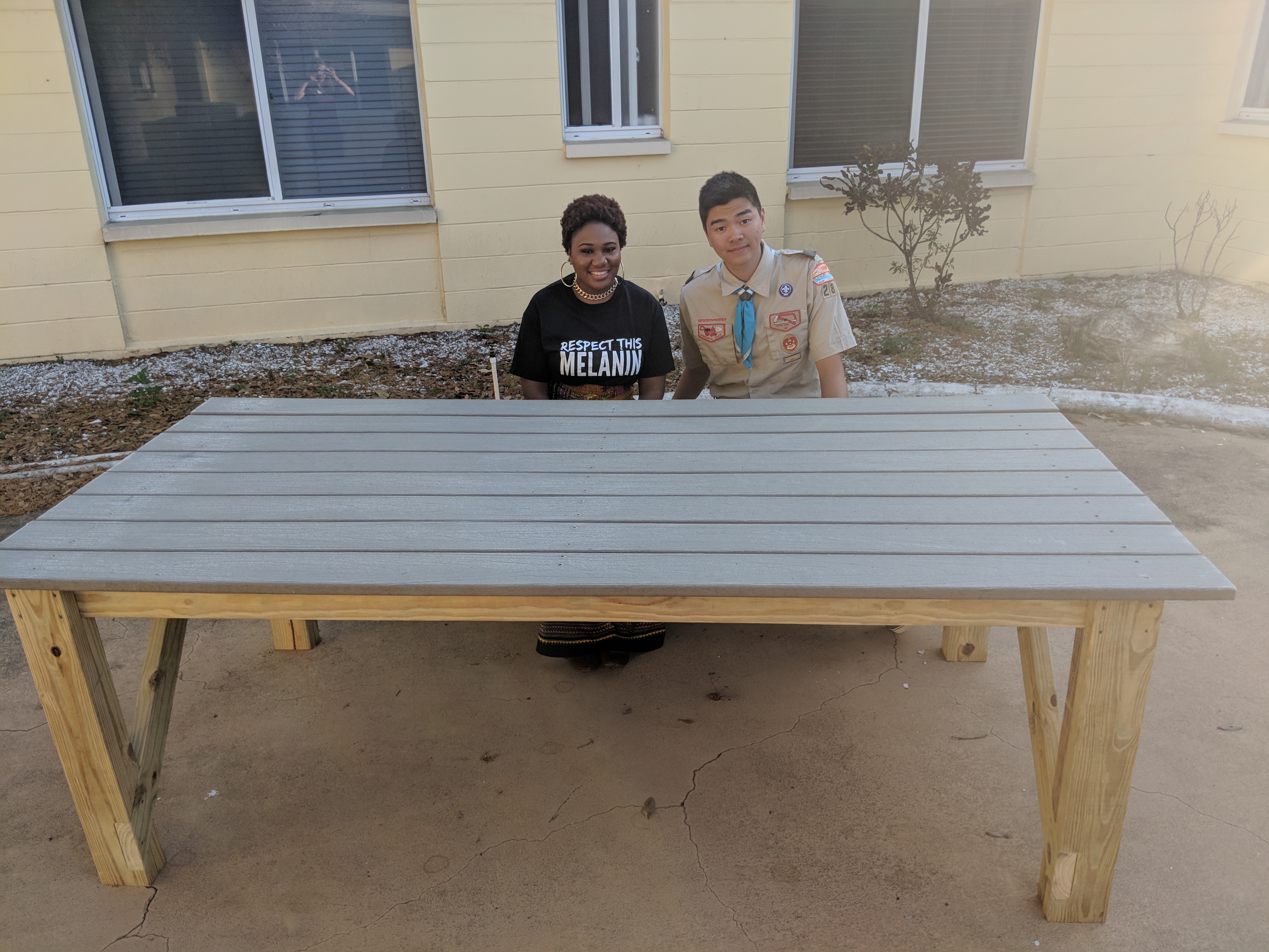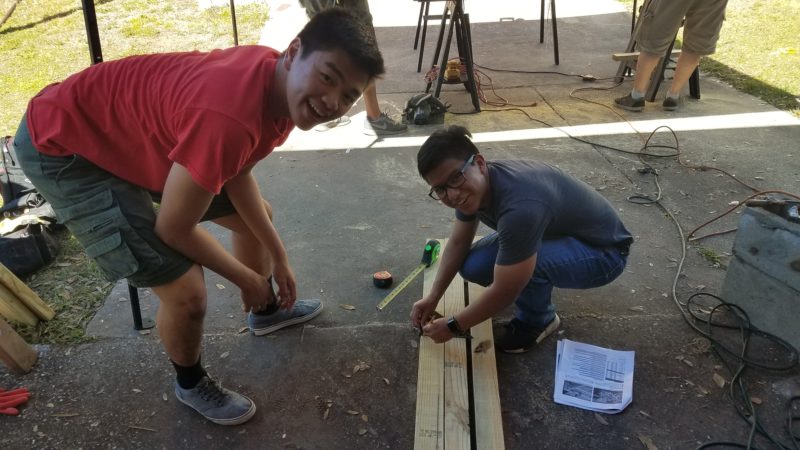 在2月底到春假开始的一个月里,罗伯特为当地的退休社区做了两个野餐长凳和桌子。 法拉古特海军上将学院通过捐赠400美元的材料和用品帮助了这个项目。 每张桌子都安排了一张长凳,这样坐轮椅的顾客就可以进入桌子的另一边。