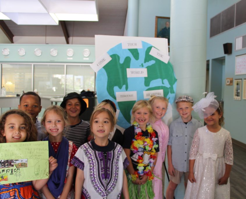 一年级学生一直在和苏珊·莫里斯老师一起阅读来自世界各地的书籍,苏珊·莫里斯老师在学生中心提供图书馆服务。 他们非常喜欢,所以莫里斯女士想要举办一场活动。