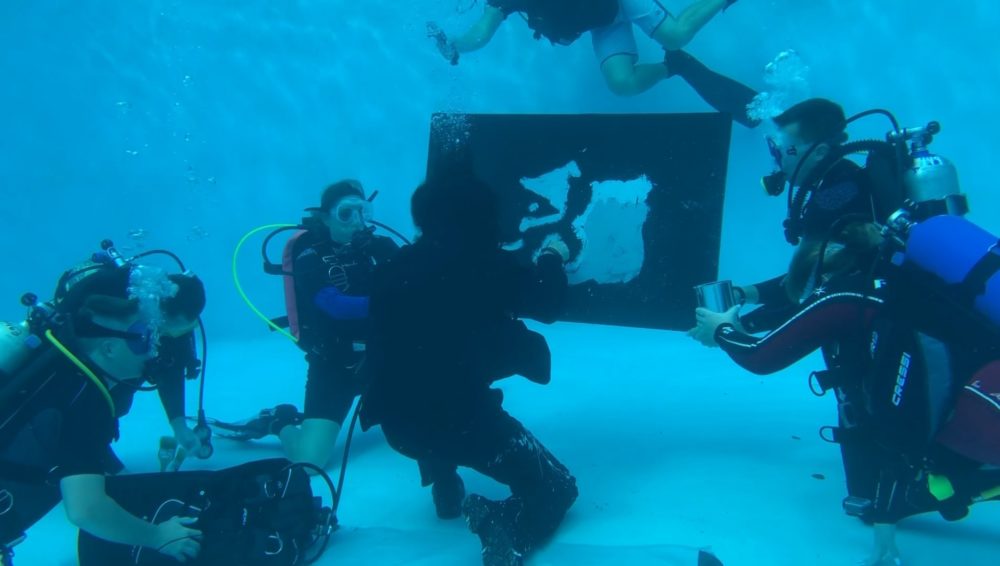 2019年3月,潜水学生协助艺术家迈克尔·以色列进行他的第一次水下速度绘画。 更多照片和视频,请访问bit.ly/2XgbPnY