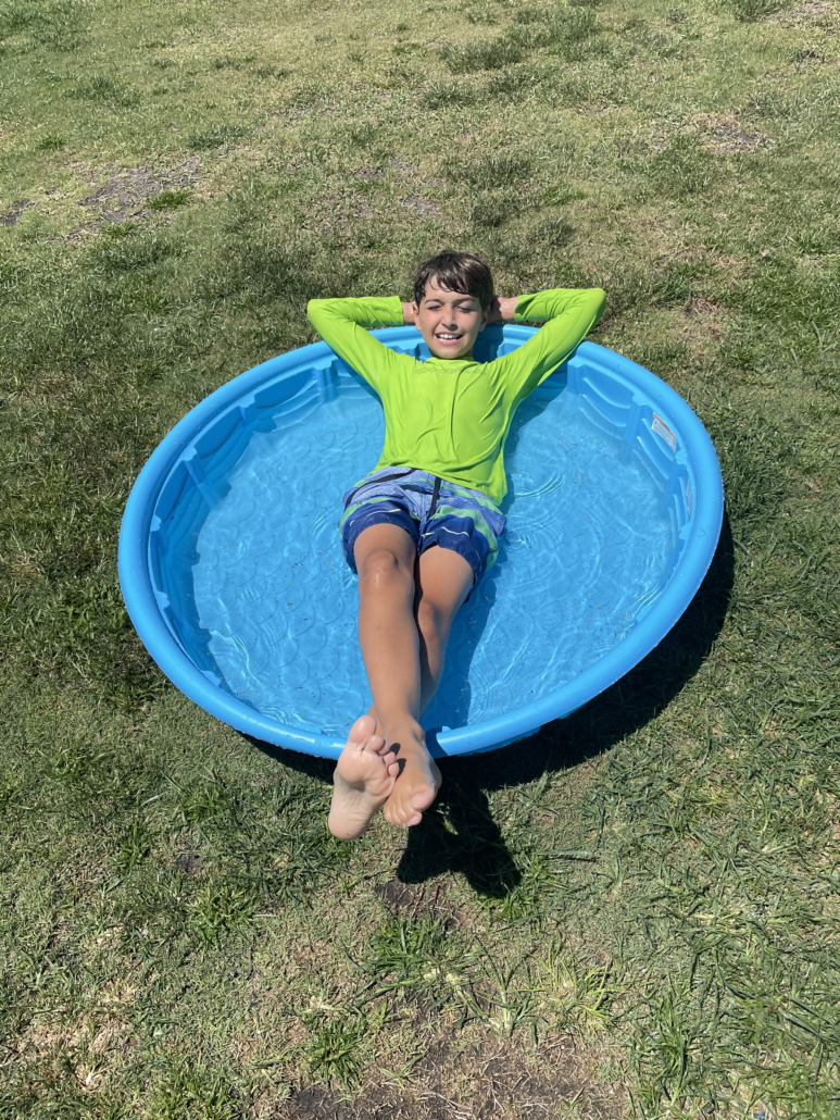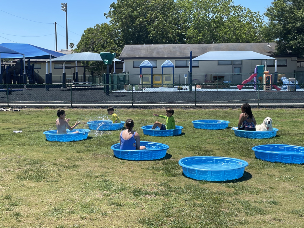 三年级和四年级的学生去操场旁边的场地参加他们的星期五饮水日。 他们在自己的游泳池里放松,玩滑梯和滑梯,玩飞盘和球。 They even had a special visitor – Coach Stephenson’s dog, Oliver!