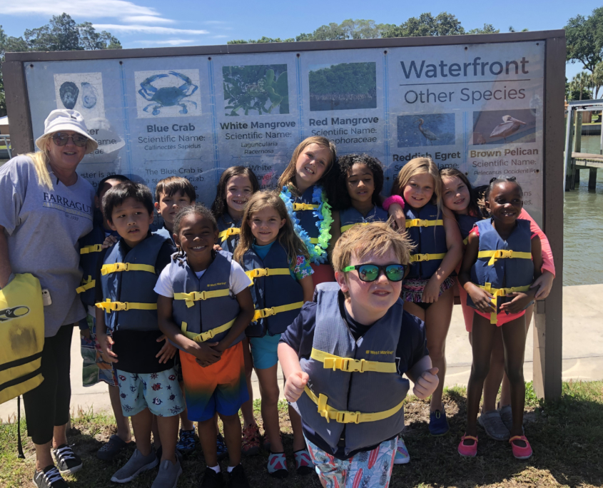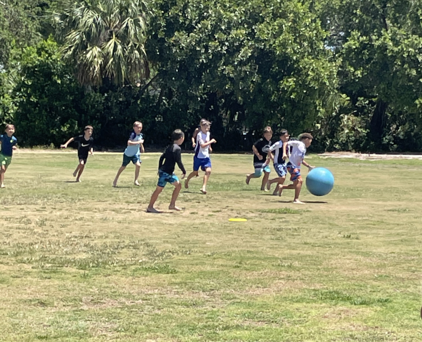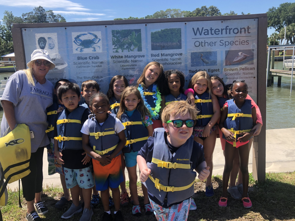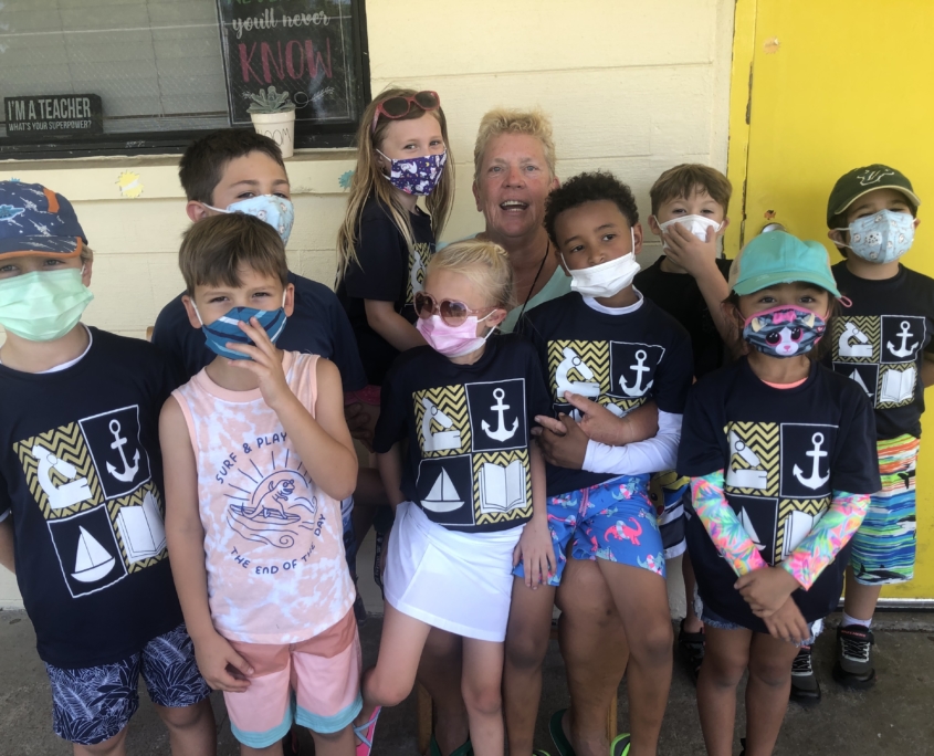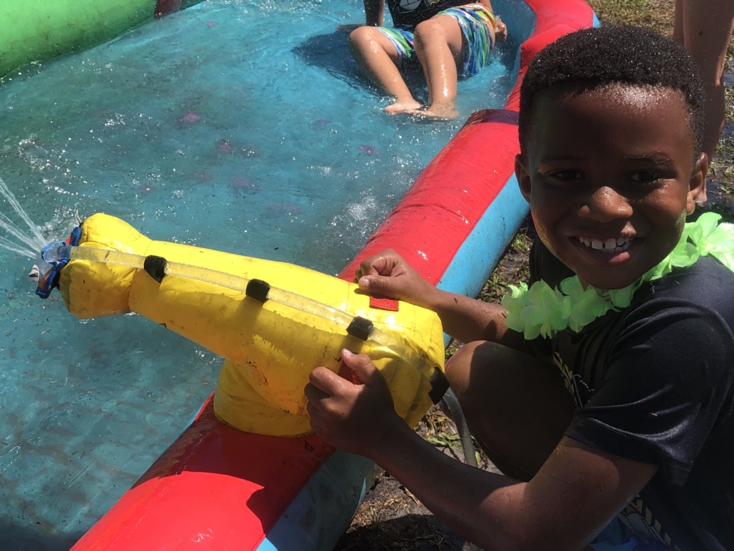 幼稚园-二年级的学生前往海滨参加披萨派对。 当他们在那里的时候,他们滑下了一个大水滑梯,打了一场水球大战,乘船游览,当然还吃了一些美味的披萨。
