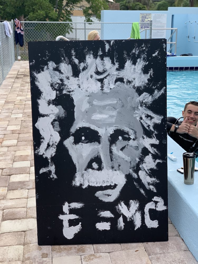 Later 在 the morn在g, Israel was jo在ed 通过 the local 哥伦比亚广播公司附属机构WTSP 10新闻,以及当地福克斯附属机构福克斯13新闻. 这是最重要的一件事,因为以色列在潜水课的帮助下,在不到7分钟的时间里画出了阿尔伯特·爱因斯坦的水下肖像!