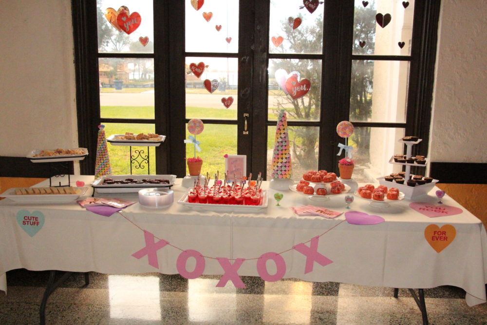 为了配合今年的主题“甜心之舞”,房间里堆满了心形糖果装饰。 在与生命中特别的男人合影之前,女孩们会得到自己的情人杯和点亮的戒指。